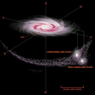 According to the AGM Theory antigravity matter drag affects molecular clouds more strongly than stars. The Magellanic Cloud galaxies are pushing through antigravity matter as they orbit the Milky Way. The Magellanic Stream is caused by antigravity matter drag scouring the molecular clouds out of the Magellanic Cloud galaxies. |